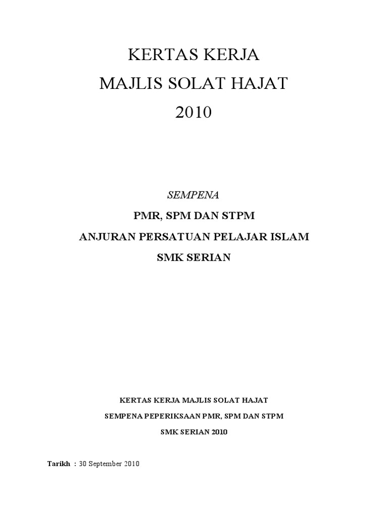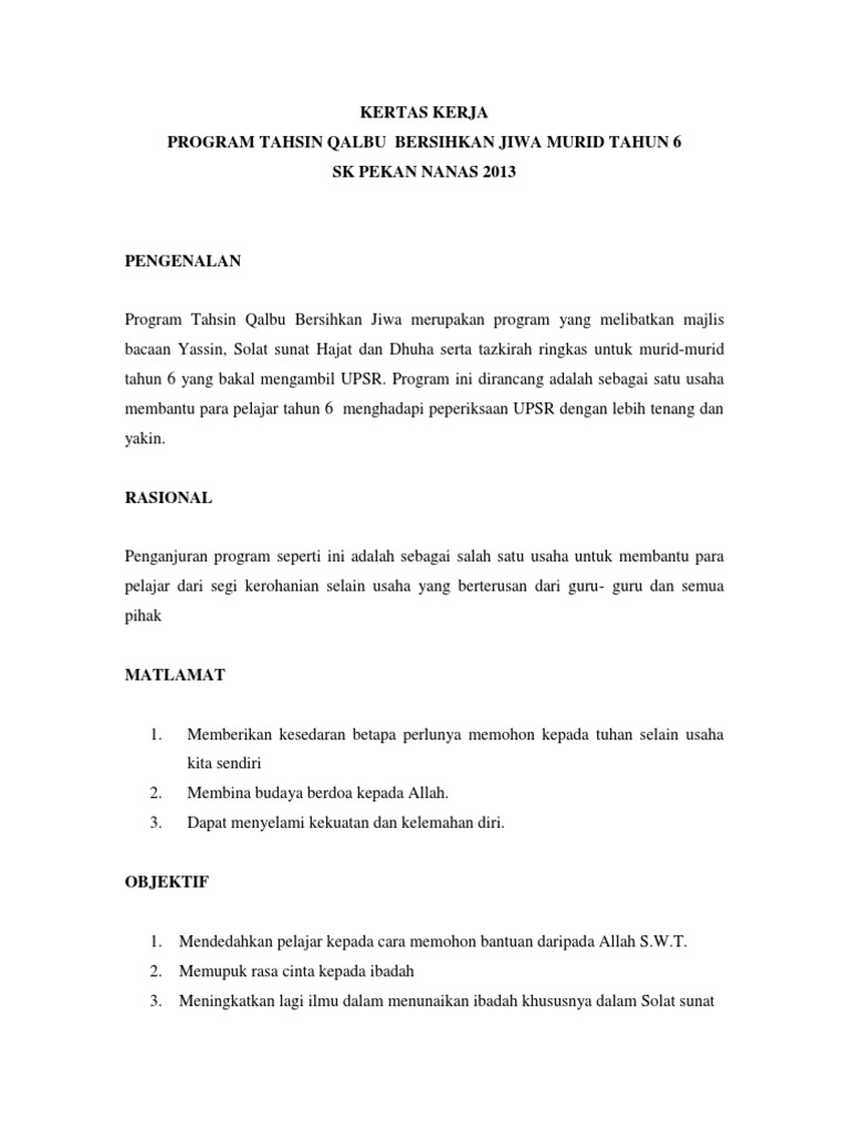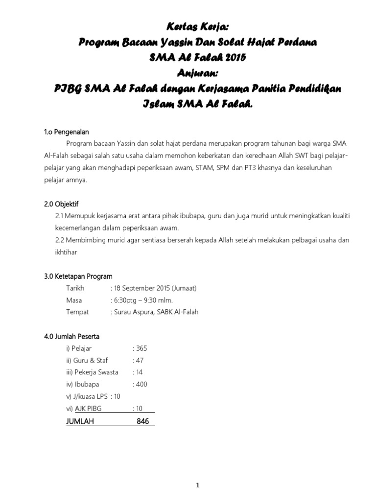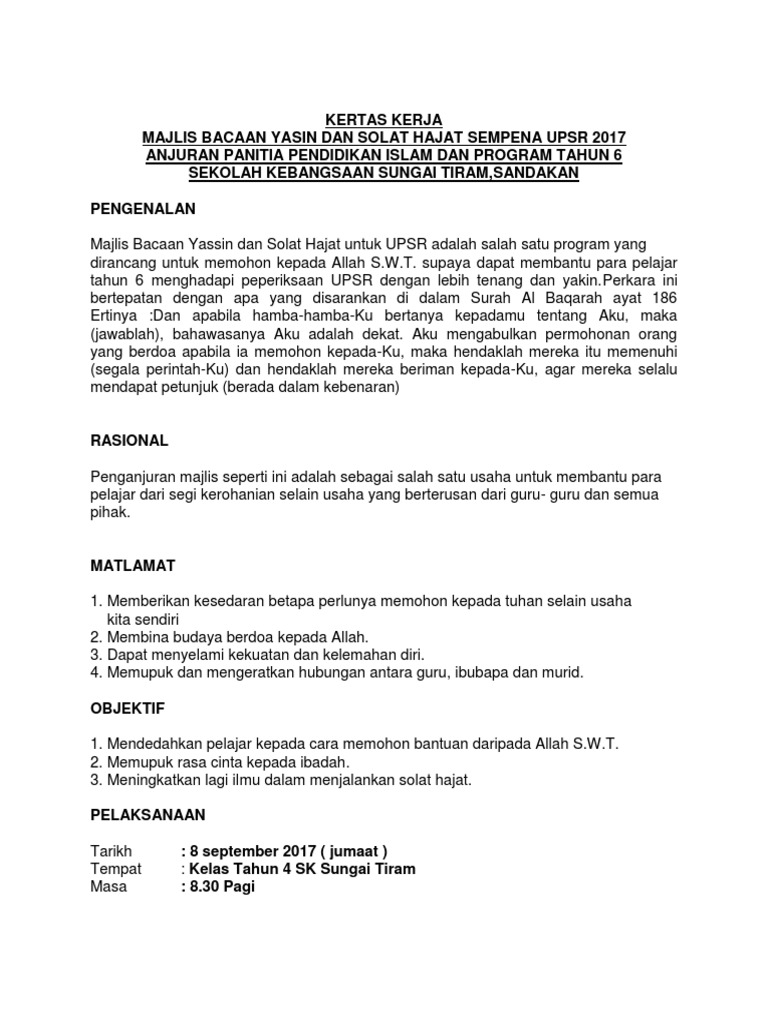 Kertas Cadangan Program Solat Hajat 2016 Docx Kertas Cadangan Program Solat Hajat 2016 Sekolah Agama Menengah Bandar Baru Salak Tinggi 1 0 Matlamat Course Hero from www.coursehero.com Sholat hajat adalah ibadah sholat yang dilakukan ketika seseorang memiliki suatu keinginan ataupun hajat. Pertama melakukannya dengan dua kali salam, dan yang kedua dengan satu salam. Sholat hajat adalah salah satu sholat sunah yang memiliki banyak keistimewaan. Kertas kerja program bacaan yasin & solat hajat upsr. Sholat sunnah hajat menjadi salah satu jalan islami yang harus di lakukan oleh setiap umat muslim ketika memiliki hajat atau keinginan tertentu yang ingin cepat terkabul. Kertas kerja audit (audit paperwork) adalah mata rantai yang menghubungkan antara catatan klien auditor dengan laporan audit. Sehingga tidak sedikit juga ada di antaranya yang hendak mengerjakan sholat sunnah hajat harus menunggu malam datang. Sholat hajat adalah salah satu sholat sunah yang sangat dianjurkan untuk dikerjakan, terutama saat memiliki hajat atau keinginan.