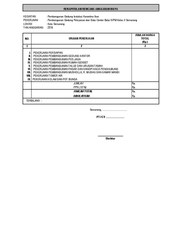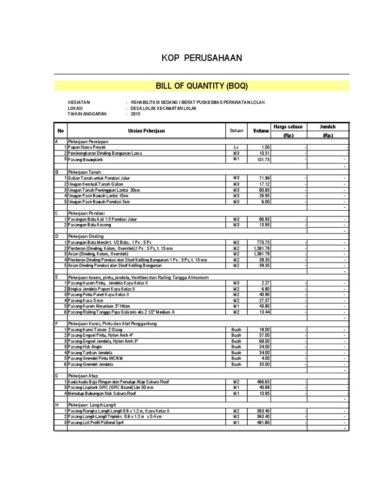 Dalam perencanaan sebuah proyek konstruksi, selalu dibutuhkan nilai estimasi untuk mewujudkan proyek konstruksi tersebut. There was a call for more research to be. All sectors posted positive growth with the exception of mining & quarrying. A bill of quantities (boq / bq) is a document prepared to allow the quantification and costing of construction works and may be prepared during several stages on a project for all of the works or a sample of the works. It is usually prepared by a cost consultant or a surveyor.
