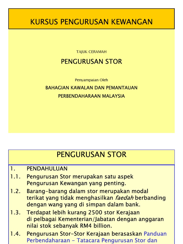 Tatacara Pengurusan Stor Kerajaan Ppt Download from slideplayer.info · akta tatacara kewangan 1957 akta 61 d. Kaedah pelupusan kaedah pelupusan jualan lelong dilaksanakan ke atas stok berikut: Laporan tahunan kehilangan dan hapus kira stok tahun semasa mesti disediakan oleh pegawai stor pada setiap tahun untuk dikemukakan kepada urusetia jawatankuasa pengurusan aset kerajaan (jkpak). (dilawati 169 kali, 1 lawatan hari ini). Select category aktiviti pelajar (3) berita semasa (30) buku rujukan (3) contoh latihan amali (5) download (15) dpin (4) hvac (6) inverter (1) kapa (1) keselamatan (4) kursus pav (3) macra (4) mesyuarat pav (1) noss (8) nota penyaman udara (7) pav (2) pdp (12) pengurusan bengkel (6). Seksyen pengurusan aset bahagian kawalan dan pemantauan (bkp) perbendaharaan malaysia tingkat 4, blok selatan kompleks kementerian kewangan presint 2, 62592 putrajaya. Tatacara pengurusan stor kerajaan (tps) : Hasil diatas adalah hasil pencarian dari anda tatacara pengurusan stor kerajaan mp3 dan menurut kami yang paling cocok adalah tatacara.